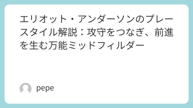 ノッティンガム・フォレスト所属エリオット・アンダーソンのプレースタイルを徹底解説。基本情報、市場価値、前進パス、ボールキャリー、守備強度、ニューカッスル時代やブリストル・ローヴァーズでの成長エピソードまで、海外ソースをもとに詳しく紹介します。