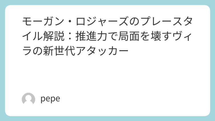 プレースタイル解説 モーガン・ロジャーズのプレースタイル解説:推進力で局面を壊すヴィラの新世代アタッカー アストン・ヴィラのモーガン・ロジャーズはどんな選手なのか。ボールキャリー、ポジショニング、得点力、キャリアの転機、欧州でのハイライトまで、海外サイト中心に詳しく解説します。 2026.03.29 プレースタイル解説